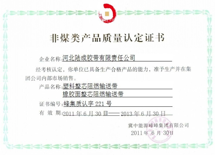 喜訊:我公司申請的高級別礦用整芯阻燃輸送帶已取得安全生產(chǎn)標志!